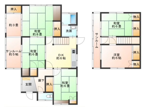 間取りは5SDKです。大人数での利用に適した間取りとなっております。